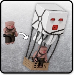 Vivez l’aventure cinématographique de Minecraft en vrai. Le Ghast interactif est doté d’un bouton sur le dessus qui active les lumières, les effets sonores et tire un projectile orange depuis sa bouche. Grâce aux chaînes et à la « cage » suspendue, vous pouvez facilement reproduire les scènes où les Piglins utilisent les Ghasts pour attaquer.