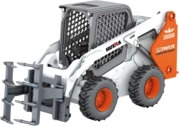 Modèle réaliste de chargeuse sur pneus avec grappin à l’échelle 1:50, en alliage métallique robuste et plastique, offrant des détails précis et des éléments fonctionnels. Il dispose d’une structure métallique, d’un bras et d’un grappin mobiles, de roues en caoutchouc pour un déplacement fluide et d’une finition blanc‑noir avec des détails orange. Parfait pour les collectionneurs, comme décoration et comme jouet éducatif.