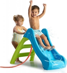 Le premier toboggan pour les tout-petits dès 12 mois offre du plaisir toute l’année – à la maison comme au jardin. Grâce à la fonction 2-en-1, on peut raccorder un tuyau d’arrosage et le transformer en toboggan aquatique idéal pour les journées chaudes. Léger, pliable, en plastique résistant avec protection ANTI-UV contre la décoloration, avec des parois latérales hautes et une base stable pour jouer en toute sécurité.