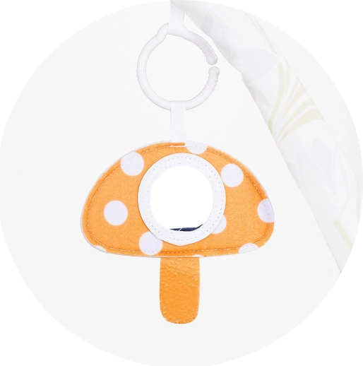 Des éléments intégrés comme un miroir et des motifs contrastés retiennent l’attention de bébé et l’incitent à interagir et à bouger.