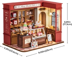 Construisez votre propre « Pâtisserie au miel » – un diorama réaliste avec vitrines, étagères et desserts miniatures qui illuminera n’importe quel intérieur. Les pièces découpées avec précision s’emboîtent en toute sécurité sans colle, pour un montage propre, ludique et robuste. L’éclairage LED intégré crée une ambiance chaleureuse et met en valeur tous les détails de la vitrine.