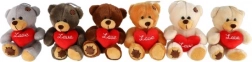 Choisissez l’ourson selon votre style – 6 couleurs disponibles, du beige clair au brun chaleureux et au gris. Chacun tient un cœur avec l’inscription Love.