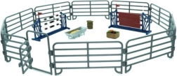 Une clôture connectable en panneaux et des éléments de saut colorés créent un espace sûr pour l’entraînement et les soins des chevaux. Parfait pour mettre en scène diverses situations de jeu.