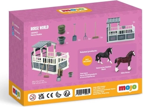 Découvrez le monde de l’élevage de chevaux avec le set réaliste de Mojo. Ce coffret propose une écurie pour chevaux avec accessoires, une clôture peinte à la main et un niveau de détail soigné. Sont inclus une pelle, une fourche, un balai, un seau, un sac d’avoine et un panier à foin. Fabriqué en PVC sans phtalates, convient aux enfants à partir de 3 ans. Les chevaux ne sont pas inclus.