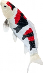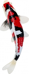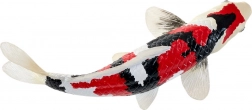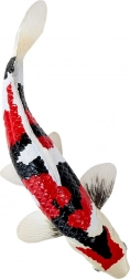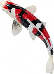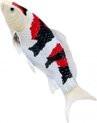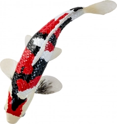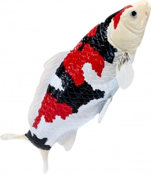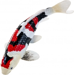 La combinaison typique de blanc, de noir et de rouge reproduit fidèlement les véritables koi Showa et met en valeur les détails des écailles et des nageoires.
