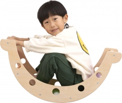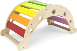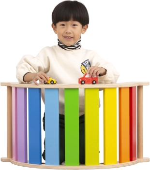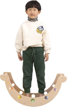 La bascule en bois arc-en-ciel Viga inspire les enfants au jeu actif et au développement naturel. Elle aide à entraîner l’équilibre, les capacités de coordination et la motricité globale, tout en offrant d’innombrables possibilités de jeu libre selon les principes Montessori.