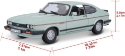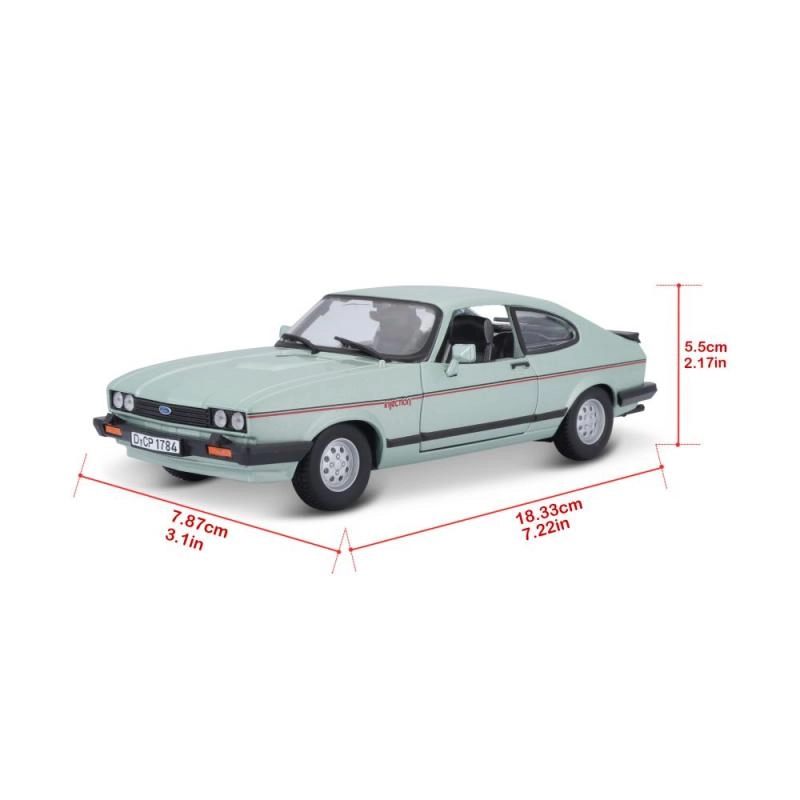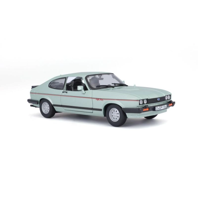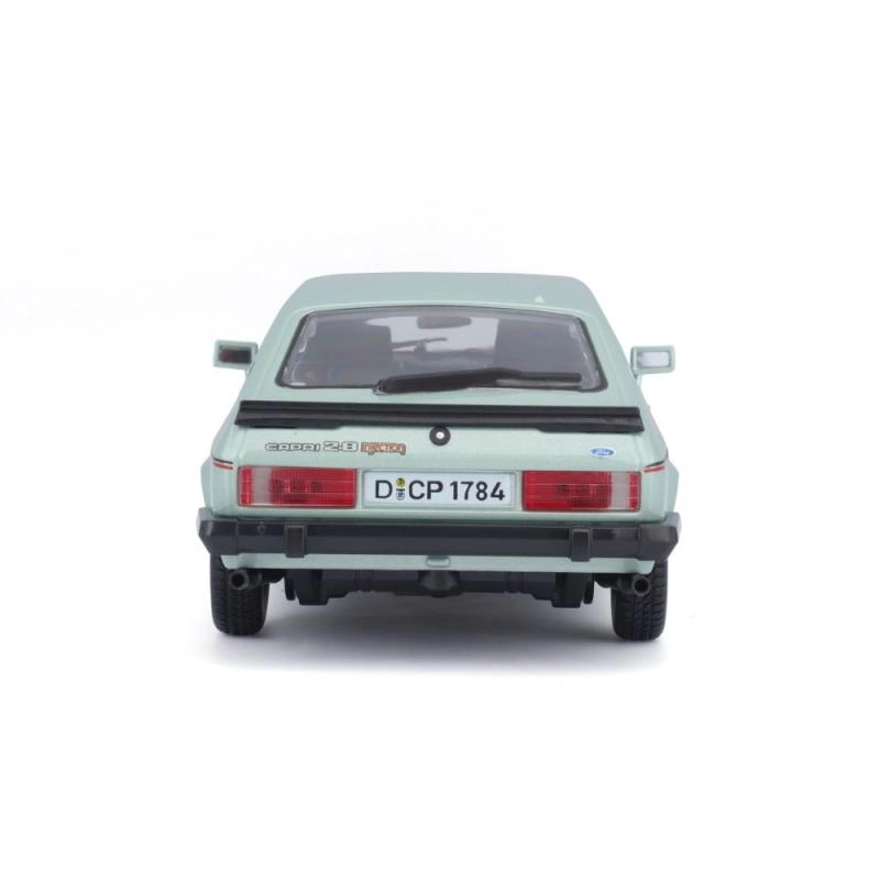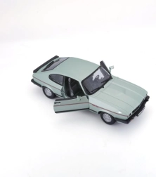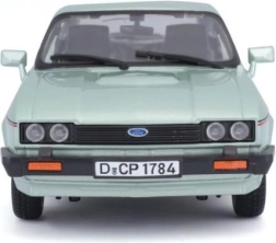 Modèle en métal Ford Capri 1982 à l’échelle 1:24 dans une élégante couleur vert clair. Idéal pour les collectionneurs et les amateurs de voitures classiques grâce à son rendu authentique et ses détails.