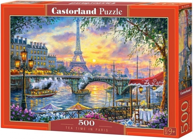 Puzzle 500 pièces Tea Time in Paris. Dimensions 47 × 33 cm, découpes de qualité, belles couleurs. Relaxation, développement de la concentration et superbe cadeau pour toute occasion.