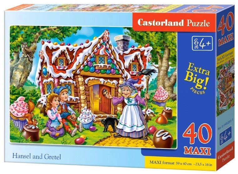 Ce puzzle grand format sur le thème du conte Hansel and Gretel est idéal pour les enfants à partir d’environ 4 ans. Grâce à ses pièces plus grandes et robustes, la manipulation est facile et l’image prend rapidement vie avec ses couleurs vives et esthétiques.