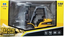 Le chariot est équipé de fourches mobiles pouvant être levées et abaissées, permettant une simulation réaliste du fonctionnement du véhicule. Les roues pivotantes offrent un déplacement fluide sur différentes surfaces, garantissant l’authenticité du modèle. Ces fonctionnalités en font un excellent élément pour les collections, la décoration ou un jouet qui développe l’imagination et les compétences manuelles.
