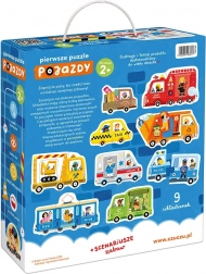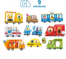 Le set comprend différents véhicules bien connus – ambulance, taxi, camion-poubelle, camion de pompiers, dépanneuse, tramway et autres. Élément unique : les pièces avec personnages peuvent être librement déplacées d’un puzzle à l’autre, permettant de créer de nouvelles histoires et situations.