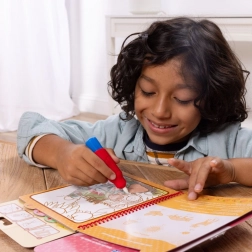 Les coloriages à l’eau parfumés Water WOW! offrent aux enfants une activité créative sans crayons ni taches. Au contact de l’eau, les images à thème fruits se colorent immédiatement puis s’estompent en séchant, pour être utilisées encore et encore. Le bloc compact à spirale avec stylo à eau inclus est un compagnon idéal pour les sorties.