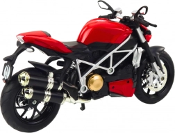 Cette moto sportive rouge à l’échelle 1:12 séduit par ses détails précis et sa construction robuste. Grâce à son corps en métal et à ses éléments en plastique, elle paraît réaliste et trouve parfaitement sa place sur une étagère, un bureau ou dans une vitrine. Les lumières et sons intégrés, alimentés par des piles AG13, renforcent la sensation de conduite réelle.