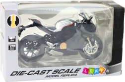 Ce modèle finement détaillé est idéal pour les amateurs de machines rapides. La structure métallique combinée à des éléments plastiques de qualité garantit la durabilité, tandis que la finition sportive noire avec de subtils accents souligne son caractère racing. L’éclairage et le son intégrés, alimentés par 3× AG13 (inclus), renforcent le réalisme du jeu.