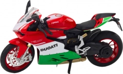 Ce modèle de moto de sport en métal, soigneusement réalisé, est un choix idéal pour les collectionneurs, les amateurs de motorisation et les enfants qui aiment les véhicules dynamiques. Avec son guidon mobile, sa suspension et ses roues tournantes, ce modèle procure une sensation authentique de conduite et de maniabilité. Son design rouge-blanc-vert, inspiré des motos de course italiennes, en fait non seulement un jouet, mais aussi une décoration stylée.