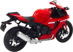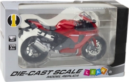 Le modèle est équipé d'effets lumineux et sonores, activés grâce à l'alimentation 3x AG13 (batteries incluses). Les fonctions ajoutées augmentent le réalisme du jeu, rendant la moto similaire à une véritable machine. Le design sportif dynamique en couleur rouge est inspiré des motos de course classiques.