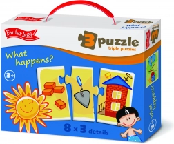 Découvrez l’ensemble malin Far Far Land, qui apprend aux enfants, de façon ludique, l’appariement et les liens entre les objets. Chaque image est divisée en trois pièces et l’objectif est de trouver la bonne trio qui va ensemble. L’assemblage favorise la concentration, la patience et apporte la joie de chaque motif réussi.