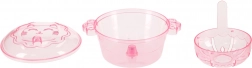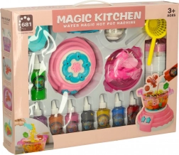 Contenu de la boîte : 12 flacons de gel de différentes couleurs, 24 moules, un gobelet avec lactate de calcium, 4 assiettes, 4 plateaux, 2 tamis, 2 pinces, 1 tasse avec couvercle pour des jeux interactifs, et plus encore.
