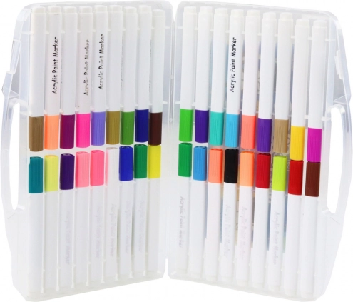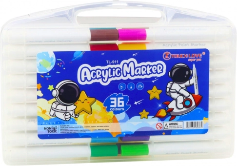 Le set de feutres acryliques est l’outil idéal pour tout jeune artiste et amateur d’art. Des feutres de haute qualité en 36 couleurs intenses permettent de créer des projets artistiques et décoratifs exceptionnels. Grâce à la composition acrylique de l’encre, les couleurs résistent à la décoloration et à l’usure et couvrent bien diverses surfaces comme le papier, le carton, le bois, le plastique ou le verre. La forte pigmentation garantit que chaque dessin devient expressif et riche en couleurs, ce qui les rend parfaits aussi bien pour les croquis du quotidien que pour des travaux artistiques professionnels.