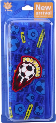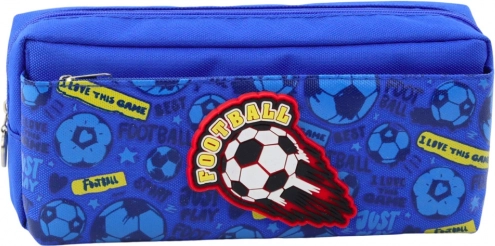 Trousse scolaire élégante de couleur bleue avec un motif de football dynamique. Elle offre deux compartiments spacieux zippés, une construction résistante et une organisation claire des fournitures d’écriture pour un usage scolaire quotidien.