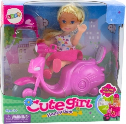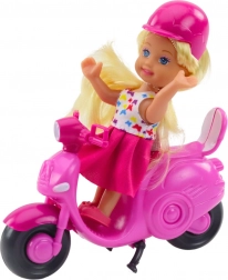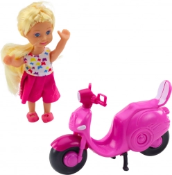La poupée de 11 cm de haut a de longs cheveux blonds et une tenue adorable. Le scooter, en plastique robuste, est équipé de roues mobiles et de rétroviseurs. Le set comprend également un casque rose, qui assure la sécurité pendant la balade et ajoute au réalisme.