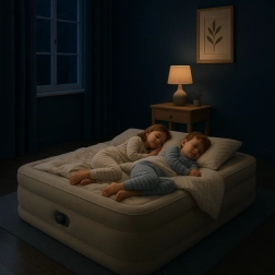 Profitez d’un sommeil confortable à la maison comme en voyage. Le lit double INTEK avec technologie Dura‑Beam et fibres Fiber‑Tech offre un soutien corporel stable sans affaissement et une longue durée de vie. La surface plush (velours) est agréable au toucher, si bien qu’un drap supplémentaire n’est souvent pas nécessaire. Grâce à la pompe électrique intégrée, vous gonflez et dégonflez le matelas en environ 3 minutes.