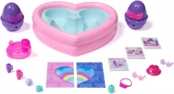 Plongez les œufs dans le bassin en forme de cœur, retirez les petites ailes et versez lentement de l’eau – dès que les deux moitiés du cœur changent de couleur, vos Hatchimals éclosent. En ajoutant plus d’eau, les couleurs se fondent en violet pour un look néon spectaculaire. L’éclosion dans l’eau avec changement de couleur transforme chaque moment de jeu en une expérience unique.