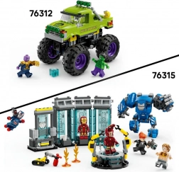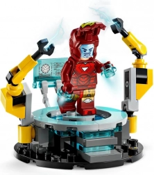 Construisez l’armurerie d’IRON MAN emblématique avec des capsules bleues transparentes mettant en valeur trois combinaisons célèbres. L’action est assurée par le mécha articulé Igor MK3 avec cockpit pour minifigurine, la paire de bras robotisés sur la plateforme de service et un scanner pour le diagnostic. Idéal pour recréer des scènes de films ou pour une exposition stylée.