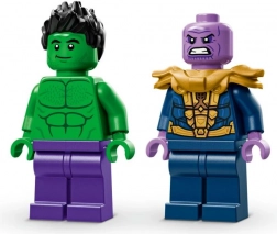Construisez un héroïque monster truck prêt pour chaque mission. La cabine ouvrante comprend une place pour la minifigurine de Hulk, les énormes roues et la suspension affrontent tous les terrains, et l’inscription Hulk Smash! donne au véhicule un style inimitable. Vous trouverez aussi l’impressionnant Thanos avec le Gant de l’Infini et le Tesseract pour des affrontements épiques entre le bien et le mal.