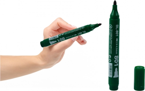 Marqueur permanent vert universel avec encre étanche et séchage rapide pour écrire et marquer sur métal, verre, plastique, papier et carton. Grâce à sa pointe biseautée 2,5–4,5 mm, réalisez des lignes fines ou épaisses, et avec une très grande autonomie jusqu’à 400 m, il sera un allié fiable au bureau, à l’atelier comme à la maison.