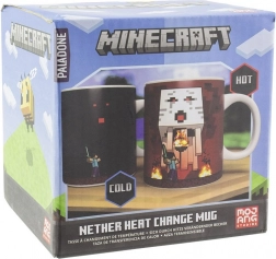 Ce mug MINECRAFT sous licence officielle, sur le thème du Nether, offre un effet thermoréactif amusant : en versant une boisson chaude, des graphismes saisissants du monde du Nether se révèlent sur le fond sombre. Avec sa capacité de 300 ml, il est idéal pour le café du matin, le thé ou le cacao.