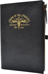 Couverture noire avec l’emblème doré « Order of the Phoenix Secret Society » et un discret branding Harry Potter pour un look remarquable.