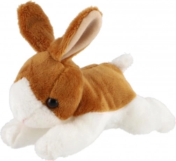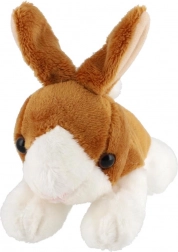 La finition bicolore, les longues oreilles et les yeux expressifs font de ce lapin un compagnon attachant pour le jeu comme pour l’apaisement.