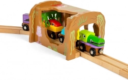 Le tunnel est fabriqué en bois certifié FSC®, garantissant une origine durable du matériau. Les finitions utilisent des peintures et vernis non toxiques conformes aux normes européennes de sécurité en vigueur. Grâce à ses dimensions standard, le tunnel est facilement compatible avec les circuits de train en bois les plus populaires du marché.