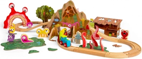 - Circuit de train en bois – monstres