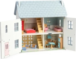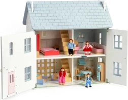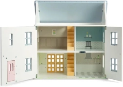 Charmante maison de poupées en bois aux douces couleurs pastel et aux détails victoriens, elle évoque l’ambiance de l’été et des heures de jeu sans fin. Elle offre 2 étages + un grenier, 4 pièces, 2 escaliers et une façade, des fenêtres et des portes ouvrantes. Fabriquée en bois certifié FSC® et peintures non toxiques, elle favorise le jeu imaginatif, la motricité fine ainsi que le développement du langage et des émotions. Meubles et poupées non inclus.