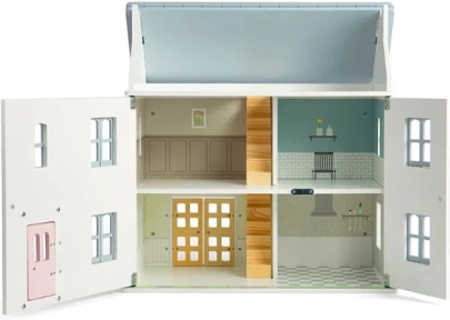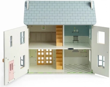 La maison est fabriquée en bois durable certifié FSC® et finie avec des peintures non toxiques, ce qui la rend sûre pour les enfants et respectueuse de la nature. Grâce à sa construction en bois robuste, elle supporte le jeu quotidien et ses beaux détails stimulent l’imagination, l’autonomie et la narration d’histoires.