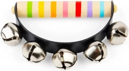 Des grelots joyeux avec une poignée en bois offrent aux enfants, dès la naissance, leurs premières expériences musicales. Cinq clochettes en métal sur une sangle élastique produisent de douces sonorités rythmiques qui favorisent la perception auditive, la coordination et la motricité fine. La poignée lisse et ergonomique est facile à tenir même par de petites mains, et le design coloré à rayures stimule l’attention visuelle. Le jouet est fabriqué à partir de matériaux de qualité, sourcés de manière responsable et répond aux normes de sécurité européennes.