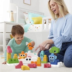 Ce set magique Mega Bloks Réveille-toi et Endors-toi favorise un endormissement apaisé et un réveil joyeux. Les enfants peuvent facilement basculer entre le bloc lune et le bloc soleil et découvrir des sons, des mélodies et des projections lumineuses qui rythment leur quotidien. Il inclut 4 figurines et un environnement riche à construire, développant l’imagination, la motricité fine et les rituels.