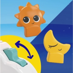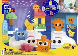 Le set interactif Mega Bloks avec veilleuse aide les enfants à instaurer un rituel sain du matin et du soir. Il comprend 4 figurines et un environnement à construire. Placez le bloc lune ou soleil sur la veilleuse pour lancer des berceuses, des sons doux, des effets lumineux et un projecteur d’étoiles pour le soir, ou des chansons optimistes, des sons d’ambiance et des motifs lumineux solaires pour le matin. Idéal pour les enfants à partir de 1 an.