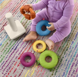 Chaque anneau apporte des stimulations différentes : rubans, matière souple, rainures marquées, textures variées et perles de hochet. Les enfants aiment attraper, presser et secouer.