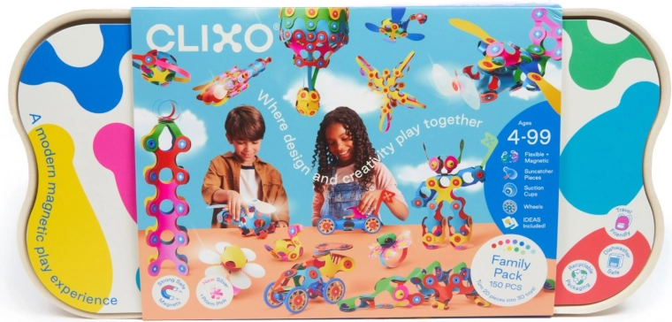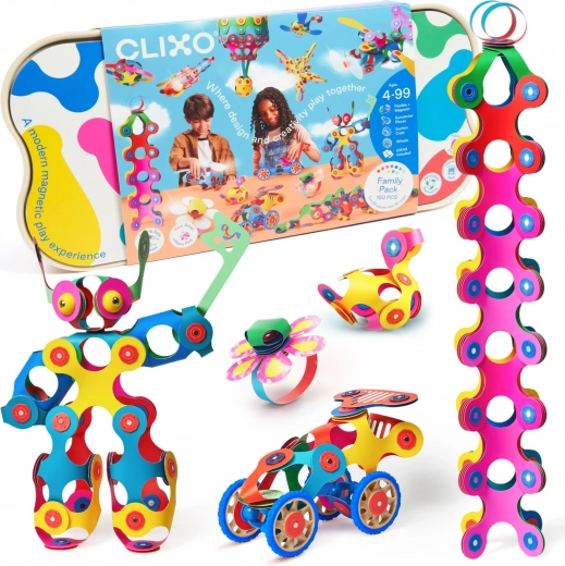 Découvrez le set familial CLIXO pour une création sans fin : 150 pièces légères et flexibles avec aimants, 4 roues et éléments scintillants. Le set développe la créativité, l’apprentissage STEAM, la motricité fine et la pensée critique. Les pièces sont imperméables, résistantes et faciles à transporter – idéales pour la maison, l’école et les voyages.
