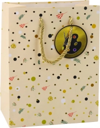 Sac cadeau pour des occasions scolaires exceptionnelles est magnifiquement conçu avec un motif moderne inspiré de motifs scolaires, qui attire l'attention et ajoute un caractère unique au cadeau. Fabriqué en carton décoratif de haute qualité, il assure durabilité et esthétique même lors du transport d'objets plus lourds. Les poignées en cordon doré offrent confort et sécurité lors du transport.