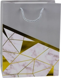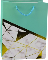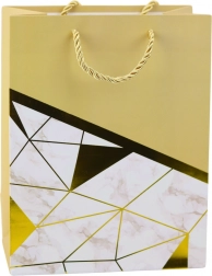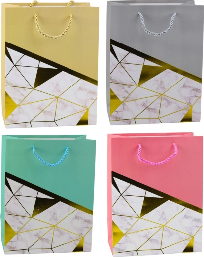 Élégant sac cadeau au design moderne, c’est le choix parfait pour toutes les occasions – des anniversaires et jubilés aux mariages et événements sociaux. Fabriqué en carton décoratif de qualité, il se distingue par une combinaison stylée de motifs géométriques à effet marbre et de lignes dorées. Ces lignes dorées métalliques ajoutent un caractère luxueux et font de ce sac un emballage cadeau élégant.