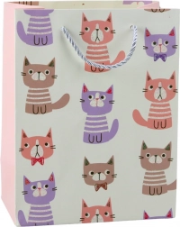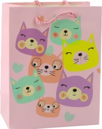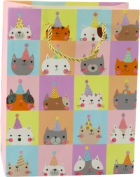 Ce charmant sac cadeau au motif de chats est idéal pour toutes les occasions ! Il est fabriqué en papier de haute qualité et se distingue par un design coloré associé à des éléments uniques façon brocart, lui conférant éclat et caractère exceptionnel. Les motifs de chats mignons dans des tons pastel plairont autant aux enfants qu’aux adultes.