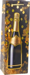 Vous cherchez une manière élégante d’emballer une bouteille de vin, de champagne ou une liqueur maison ? Ce sac cadeau en papier de qualité séduit par ses accents dorés brillants et son motif champagne, qui confèrent au cadeau une touche d’exception. Les poignées tressées en matériau de couleur dorée sont confortables en main et assurent un transport sécurisé.