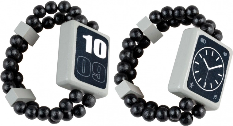 Offrez aux enfants un jeu créatif et un apprentissage discret de l’heure avec cette montre en bois double face. Une face affiche l’heure numérique, l’autre un cadran analogique avec aiguilles – un outil idéal pour une première orientation dans le temps. La construction en bois légère et le bracelet souple en perles garantissent un port confortable et une mise au poignet facile sans boucle.