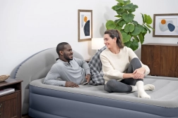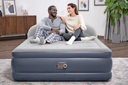 Grâce à la pompe électrique intégrée, vous préparez le matelas sans effort en quelques minutes. La tête de lit intégrée LoungeLux augmente le confort lors de la lecture ou du visionnage de la télévision et le rebord périphérique maintient le corps en sécurité au centre. Une fois dégonflé, le matelas se plie de manière compacte dans la sacoche en nylon fournie, parfait pour voyager et pour un rangement peu encombrant.