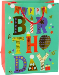 Apportez une énergie colorée à la fête ! Ce sac cadeau en papier à motif d’anniversaire mettra parfaitement en valeur chaque présent. Le carton décoratif de qualité garantit stabilité et protection du contenu, tandis que les poignées en cordon assorties offrent un port confortable et sécurisé.