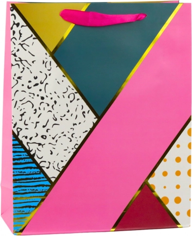 Un sac cadeau en papier élégant avec des motifs géométriques et des couleurs vives qui apporte une touche raffinée à chaque cadeau. Fabriqué en carton décoratif de haute qualité avec des anses en cordon pour un port confortable et sûr. Idéal pour les anniversaires, les anniversaires de mariage et autres occasions festives.